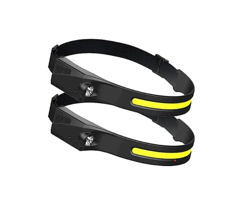 🖐️ Waving Hand Control: The LED headband torch offers 5 modes: COB High > COB Low > XPE High > XPE Low > Strobe mode. It features a convenient motion sensor that allows you to turn the headband torch on/off simply by waving your hand.